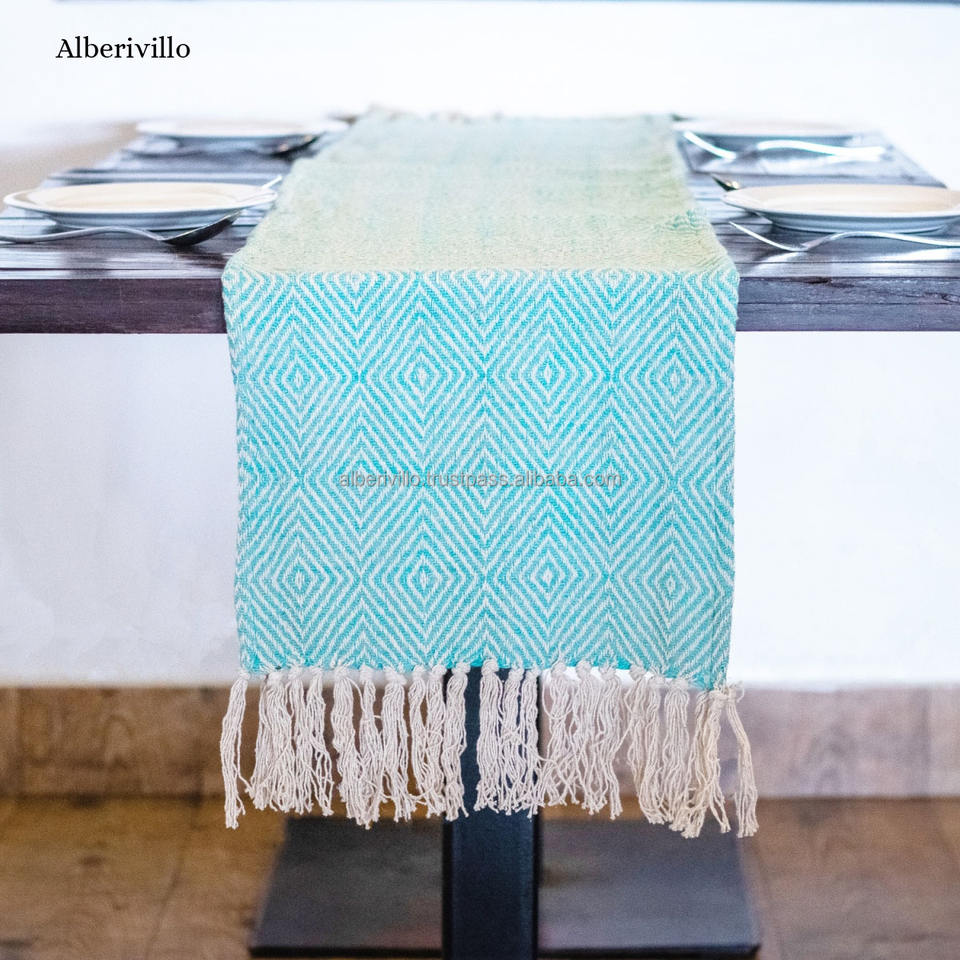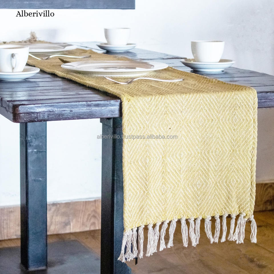 Camino de mesa de algodón de diamante amarillo tejido con flecos decoración de boda para mesa de comedor caminos de mesa de Navidad DE LA India