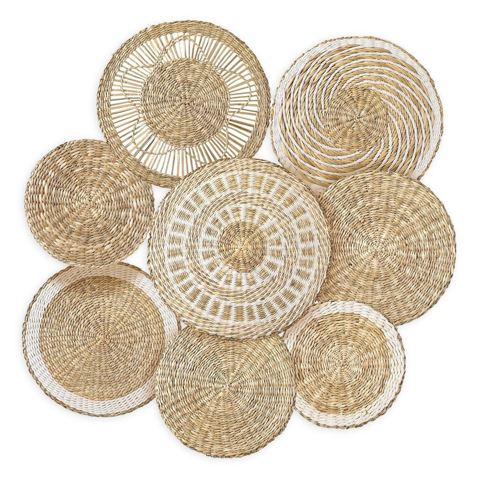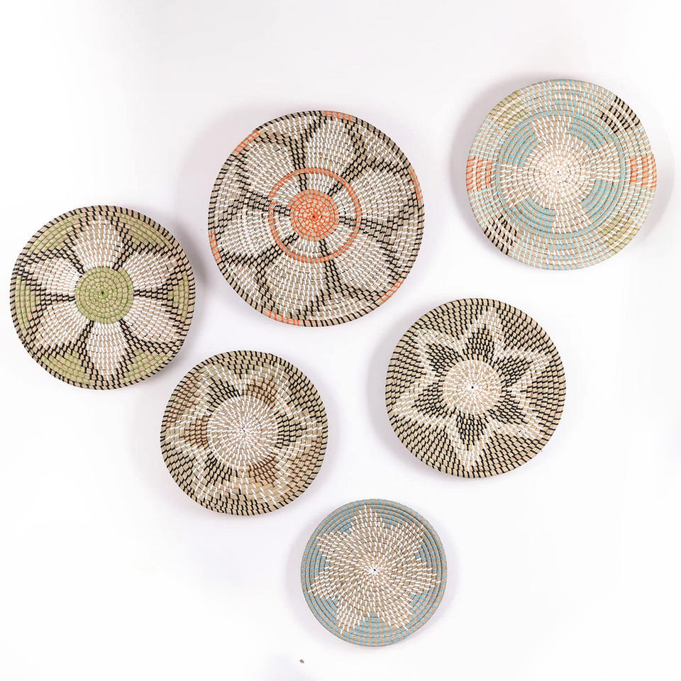 Arte de pared de fibra de paja tejida, diferentes patrones, artesanías colgantes de pasto marino, artículos de decoración para el hogar de menor costo