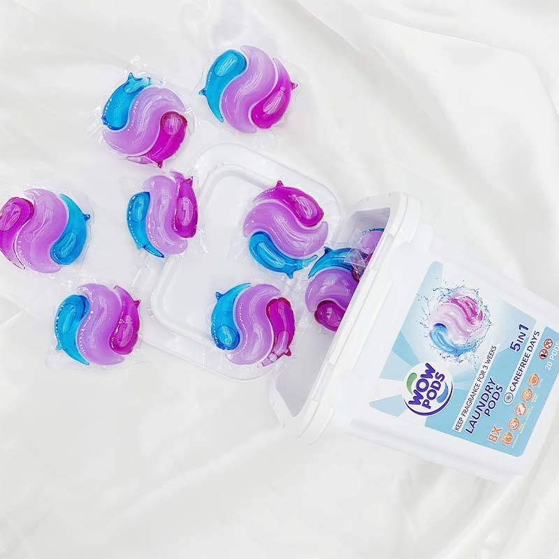 Cápsulas de lavandería Wow, cápsulas de detergente en forma de cápsulas de detergente para ropa, cápsulas de jabón con fragancia personalizada hechas en China