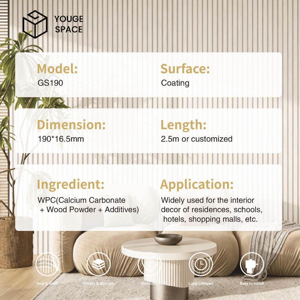 Revestimiento de Listones de WPC GS190, Moderno y Sencillo, Resistente al Humo e Impermeable, Cabecera Vertical de Listones de Madera para Pared