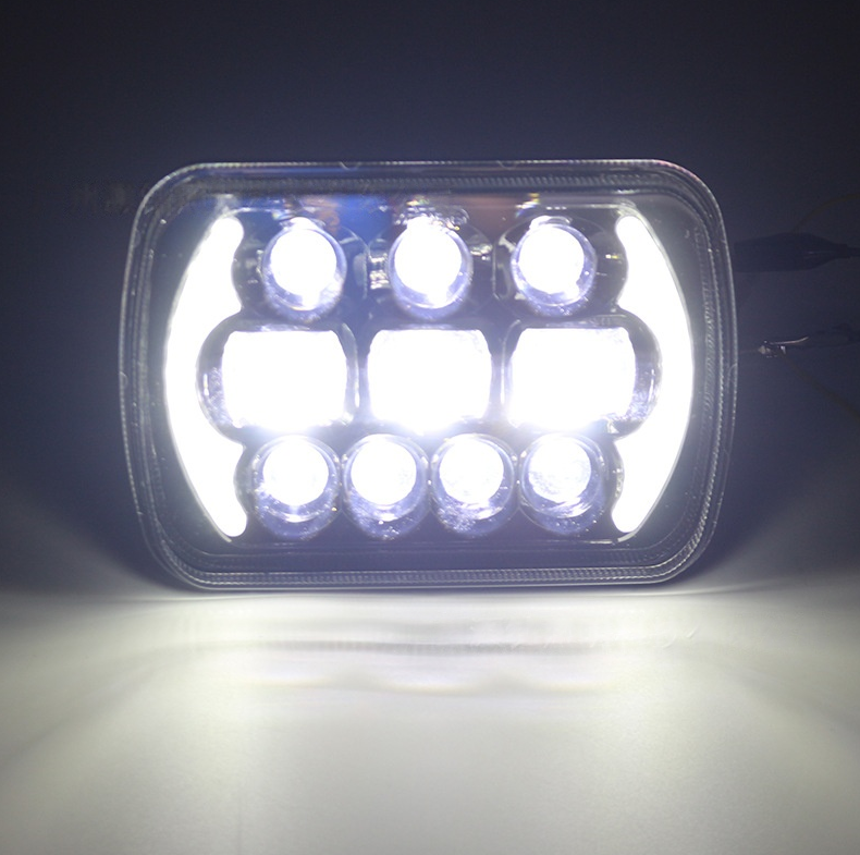 Faro LED Rectangular Wrangler de 60W con Ojo de Ángel, Lente Cuadrada de 5x7 con Kit de Conversión de Faro LED DRL