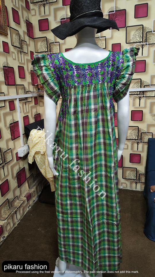 Vestido bohemio de lino envolvente con mangas cortas Vestido verde largo El mejor diseño de tela orgánica ucraniana Regalo cómodo para mujeres