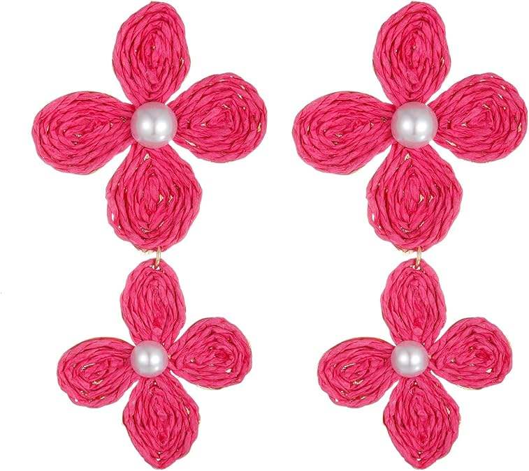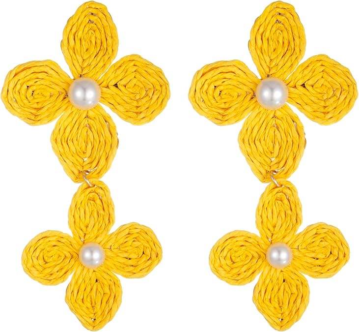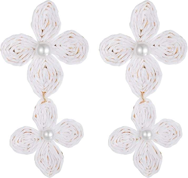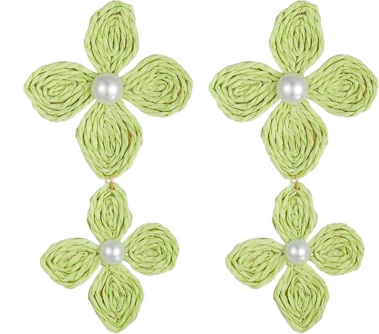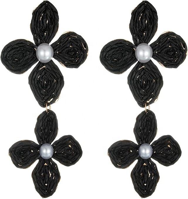 Flor envuelta, venta al por mayor, pendientes de macramé trenzados de rafia creativos, Pendientes colgantes trapezoidales geométricos de rafia hechos a mano para mujer
