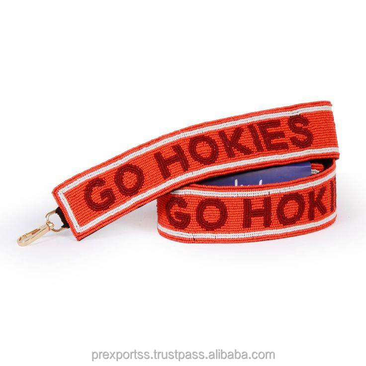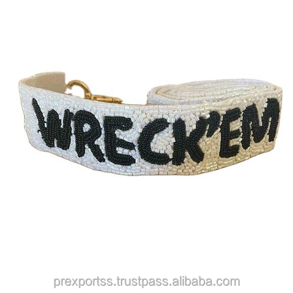 Correa de bolso deportiva personalizada hecha a mano con cuentas Wreck Em, correa ajustable bordada para el día del partido, cinturón de hombro de moda para colgar bolsos