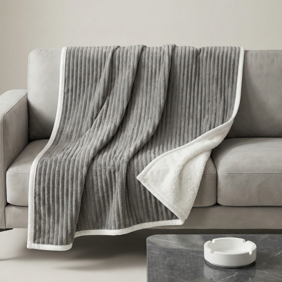 Nombre del producto:Manta de franela de forro polar acanalada con jacquard 3D a rayas, unida a terciopelo Shu