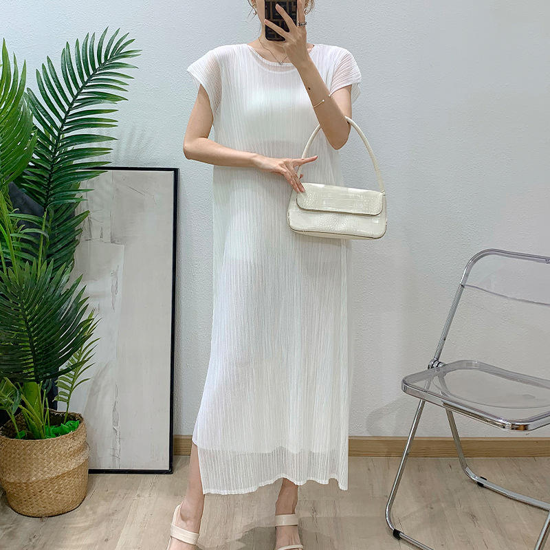 Vestido de chaleco de color sólido arrugado 2025 verano nuevo vestido sin mangas con abertura lateral temperamento elegante e informal