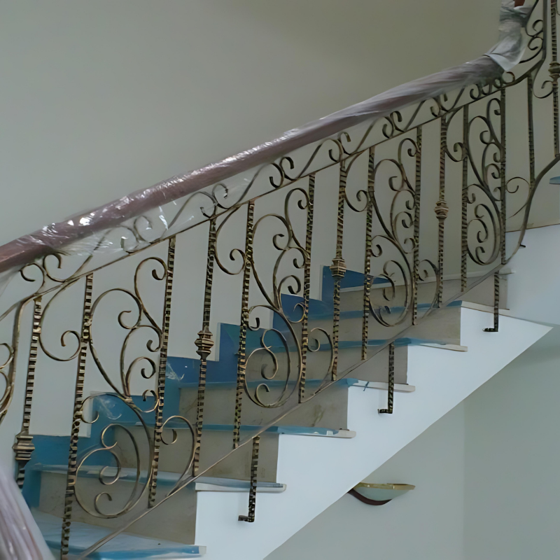 Barandilla y Pasamanos de Hierro Forjado para Escaleras de Villas Modernas con Tratamiento Antioxidante y Protección con Recubrimiento en Polvo