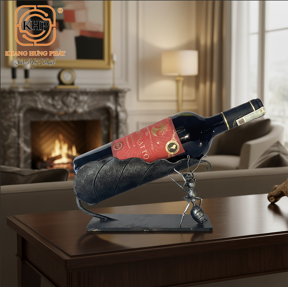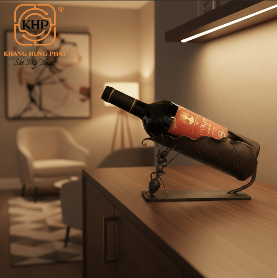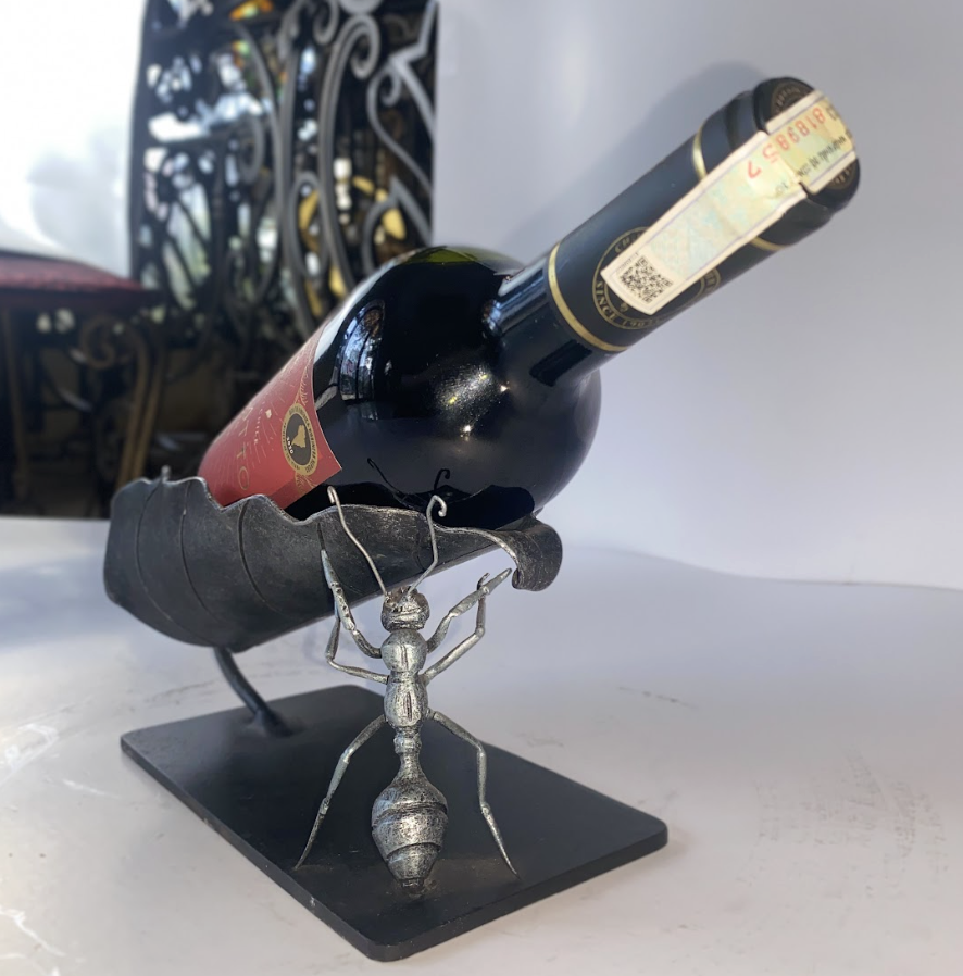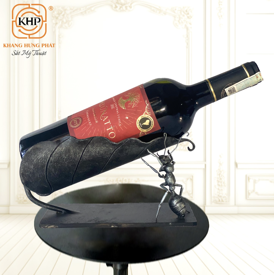 Estante para Vino de Hierro Forjado 100% Hecho a Mano, Diseño de Hoja Antihumedad, Soporte Decorativo para una Sola Botella, Lujo Vintage para el Hogar, Desde Vietnam