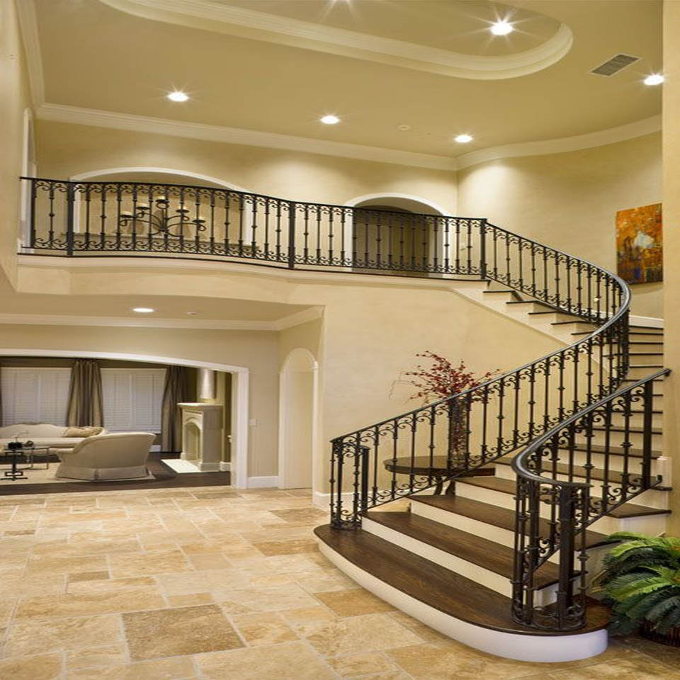 Barandilla de escalera de hierro forjado fabricada en Vietnam, diseñada con elegancia, seguridad y alto rendimiento en mente.