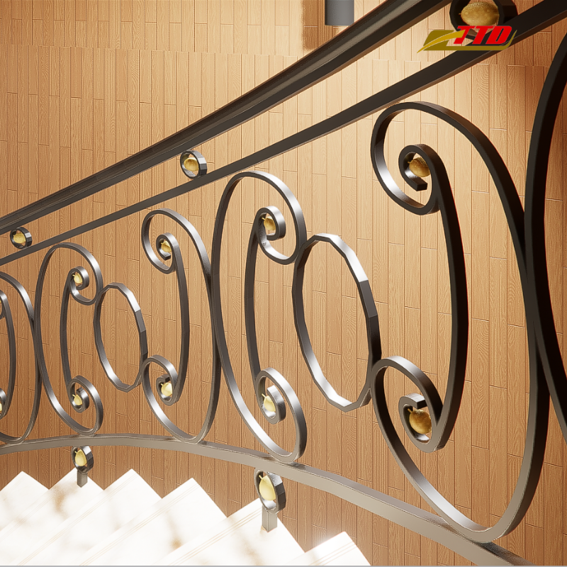 Barandilla de escalera de hierro forjado con detalles ornamentales del proveedor de Vietnam barandillas decorativas para interiores con recubrimiento en polvo