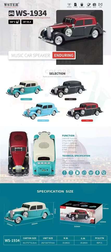 Nombre del producto:Altavoz inalámbrico modelo de coche WS-1934