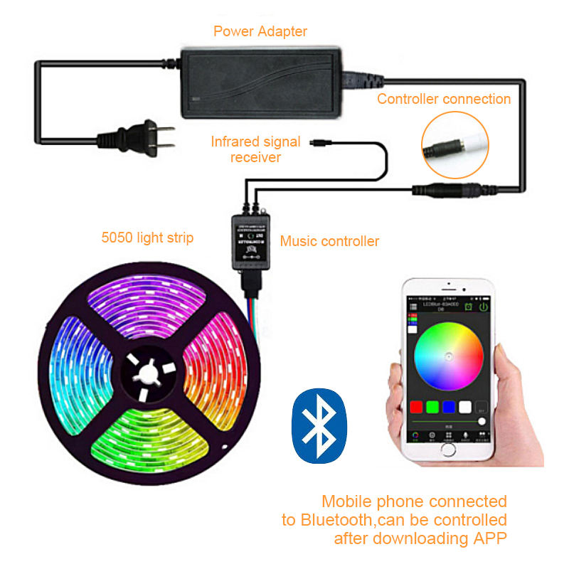 Palabras clave:Tira de luces LED de 5 metros con Bluetooth para música.