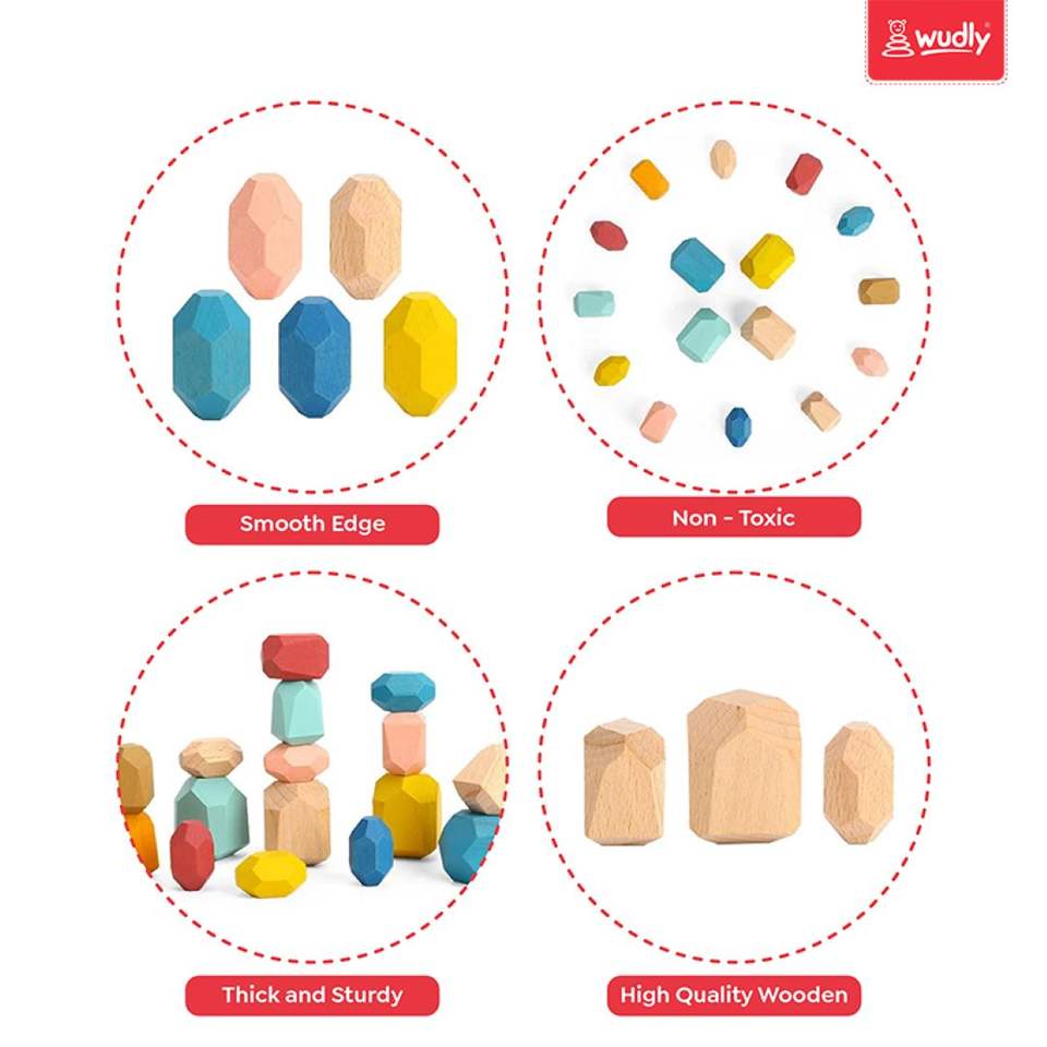 Wudly Kids Clasificación Juguetes de anidación y apilamiento Piedra de equilibrio de madera