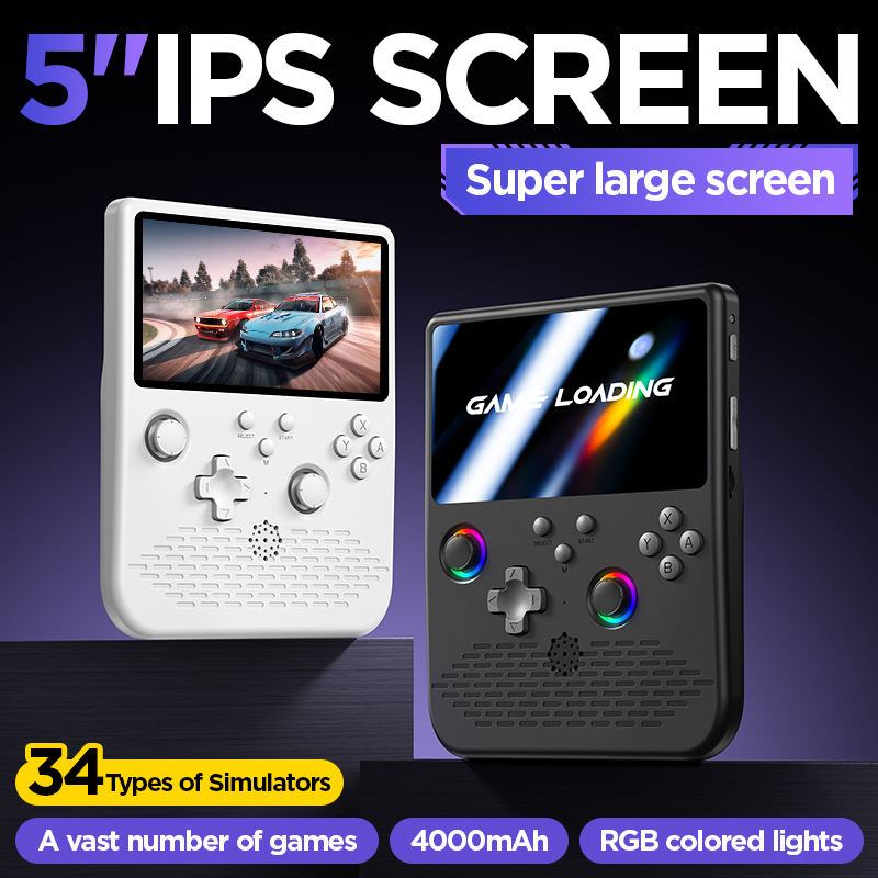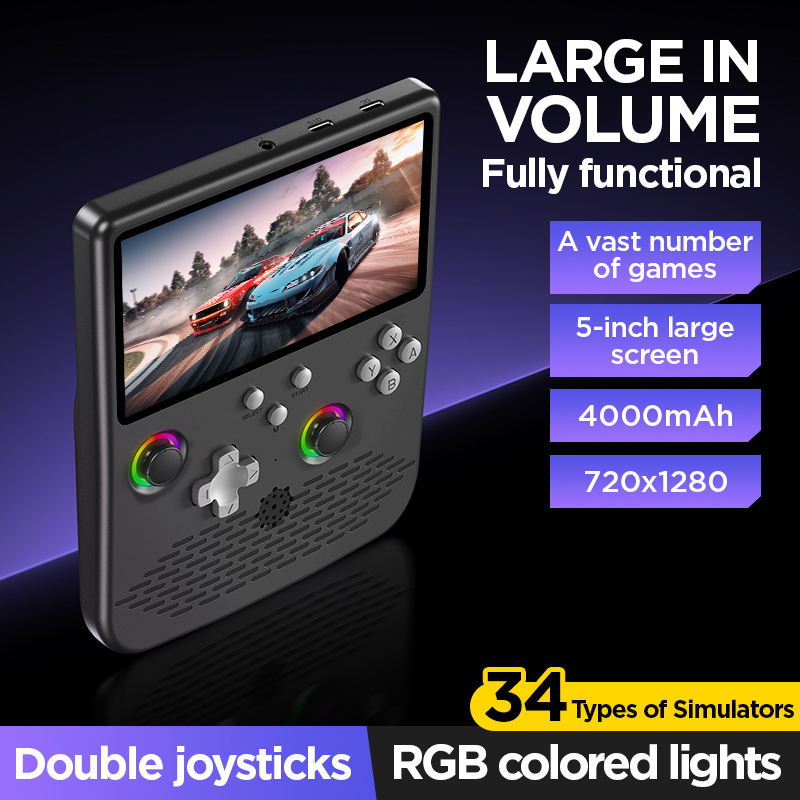 Consola de Juegos Retro Portátil X H5, Pantalla IPS de 5 Pulgadas, Batería de 4000 mAh con Joysticks RGB, 34 Simuladores, Juegos Precargados
