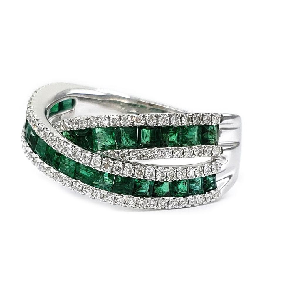 18k Diamond Princess Emerald Cross Ring