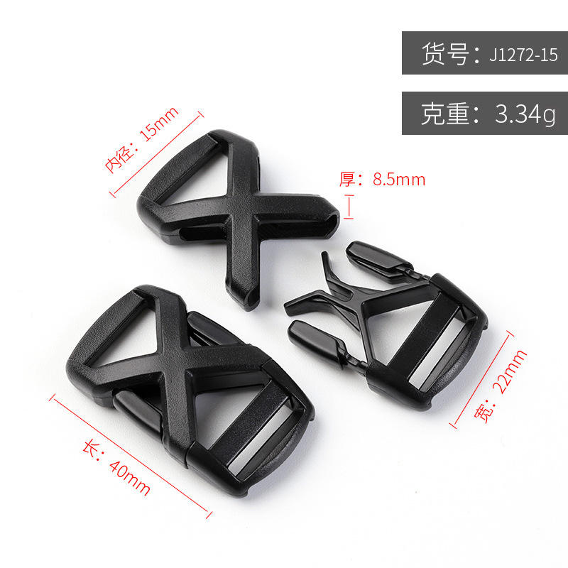 Hebilla de plástico en forma de X de 15 mm de diámetro interior para riñoneras, mochilas, equipo de senderismo, correas de nailon ajustables, color negro, unisex