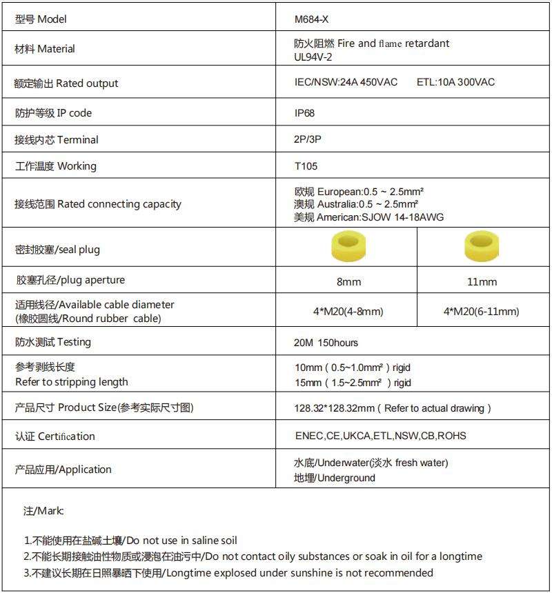 Diámetro de cable disponible:2*M20(4-8mm) 2*M20(6-11mm)