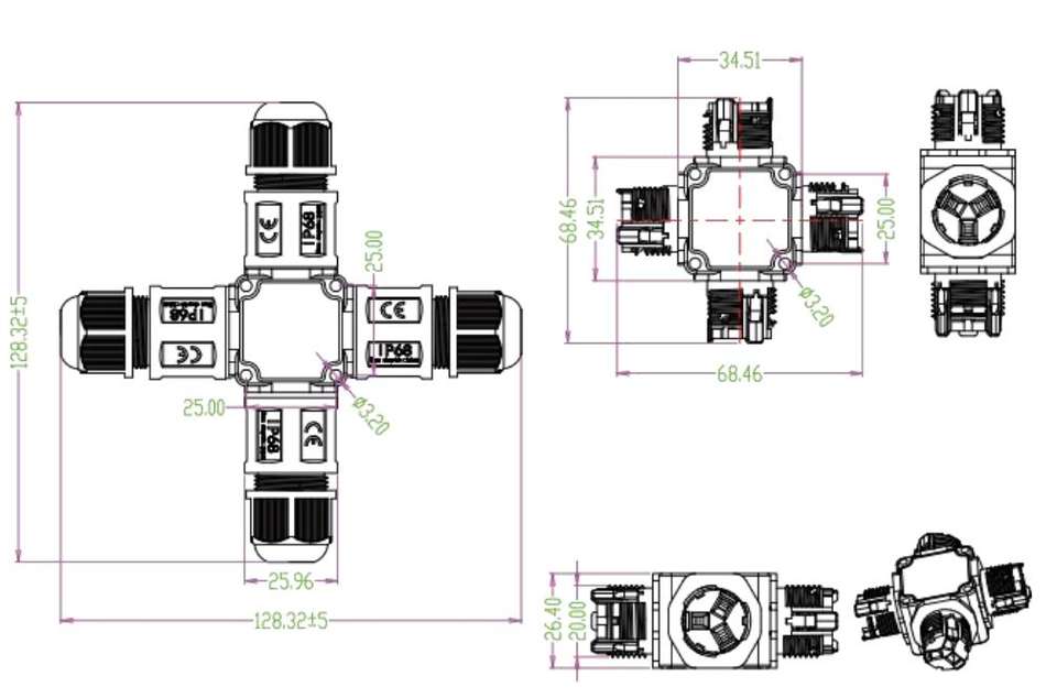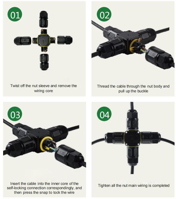 Conector de Cable Tipo X CE IP68 Impermeable de 24A 2.5-4mm2 10AWG 12AWG 14AWG para Iluminación