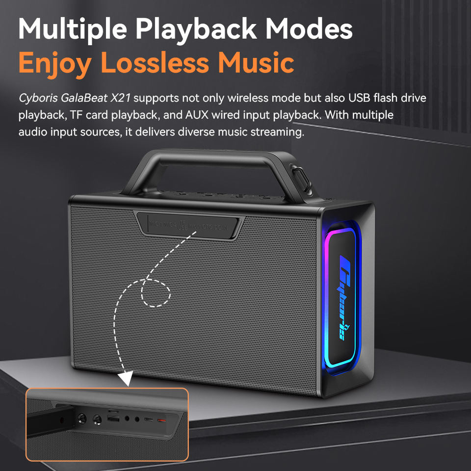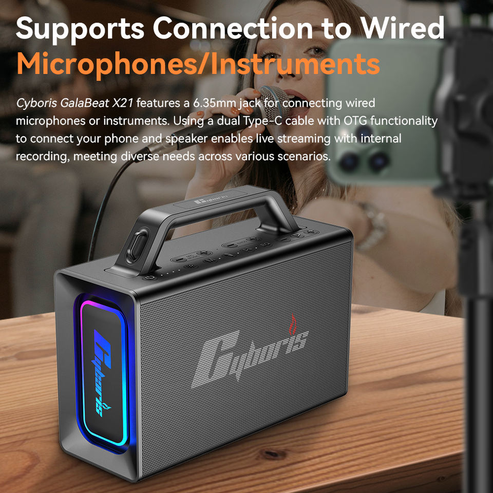 Máquina de Karaoke Portátil Profesional X21 de 200 W con Mezclador de Sonido, 2 Micrófonos UHF y Espectáculo de Luces RGB Dinámicas