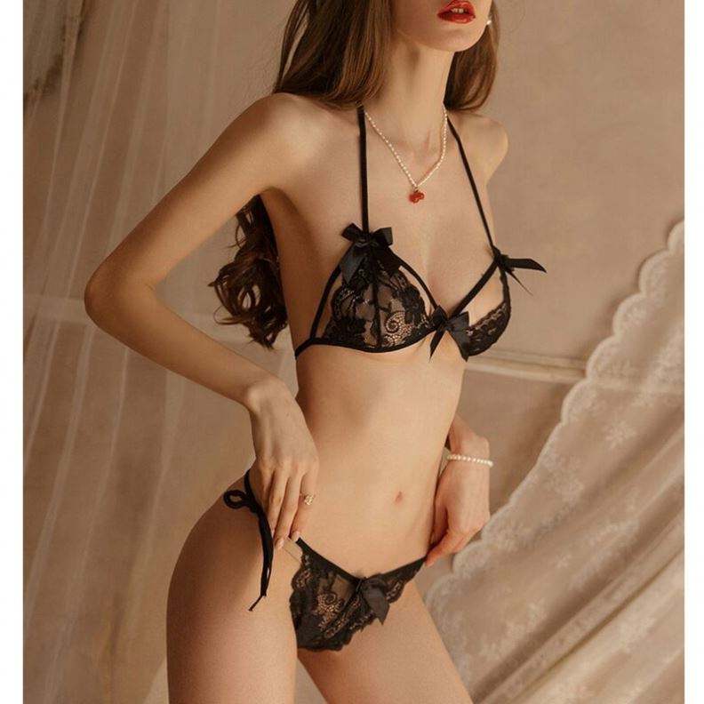 X2214 New Hot Ladies ropa dama Sujetador de encaje transparente y conjunto de bragas vendaje maduro lazo bonito lencería sexy ropa interior de mujer