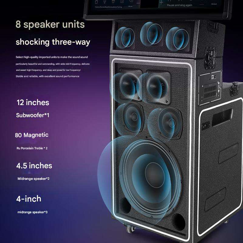 Pantalla táctil, Máquina todo en uno, Altavoz, Micrófono, Mezclador de sonido, Amplificador, Panel digitalComponentes del sistema Karaoke