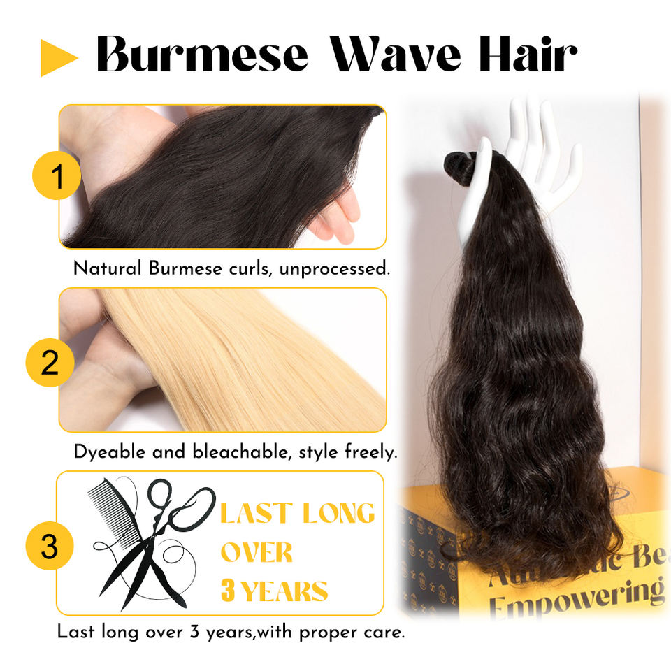 Cabello humano ondulado natural birmano crudo alineado cutícula DE LA Virgen
