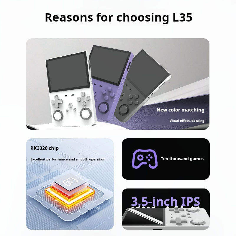 Consola de Juegos Retro Portátil XGO L35 con Más de 10,000 Juegos, Pantalla IPS de 3.5 Pulgadas, Batería de 3000 mAh, Rockchip RK3326 y Sistema Operativo Linux