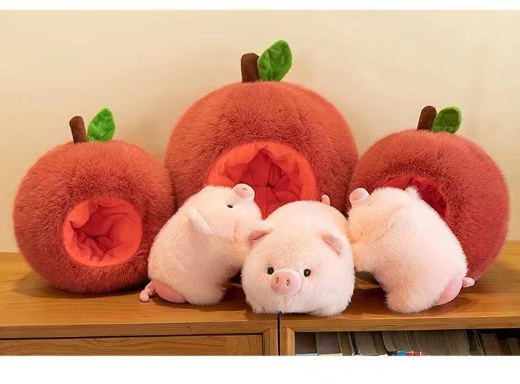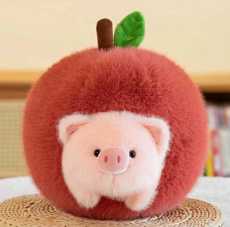Nombre del producto:Juguetes de peluche de animales de cerdo con estampado de manzana de moda