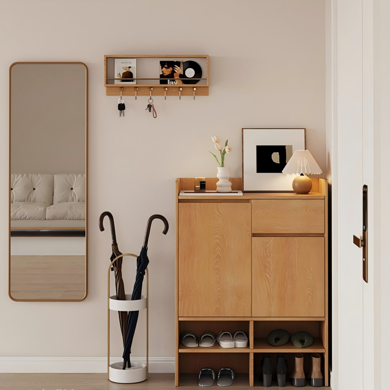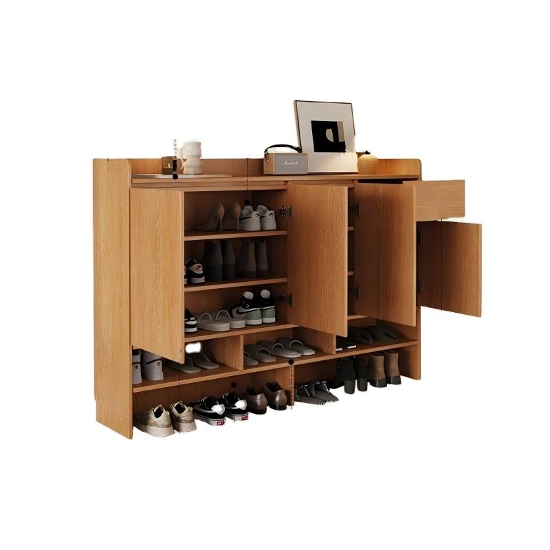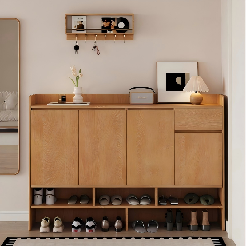 Mueble Zapatero Personalizado XHA para Pasillo, con Almacenamiento Integrado, Color Roble, Grado ENF