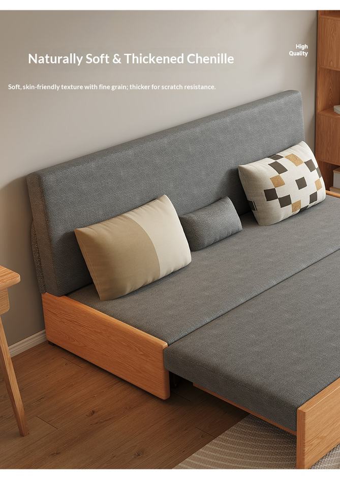 Nuevo sofá cama XHA de madera maciza con características ajustables, plegables y extensibles para sentarse, recostarse y para espacios pequeños.