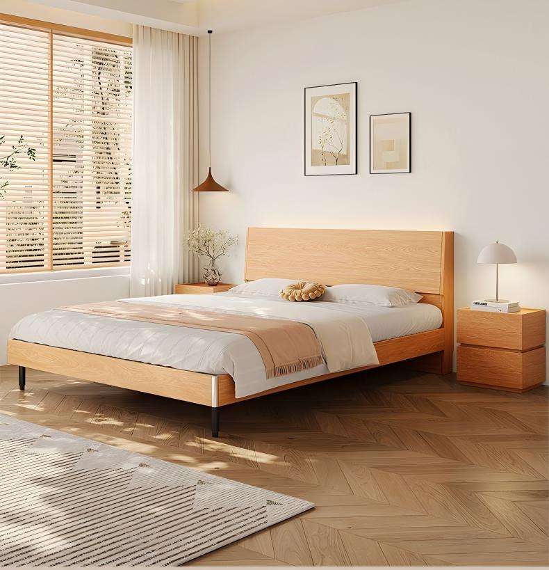 Cama de Almacenamiento de Tamaño Completo XHA de Roble Macizo con Cabecera Iluminada, Diseño Chino, Ahorra Espacio, Duradera para Apartamentos Pequeños