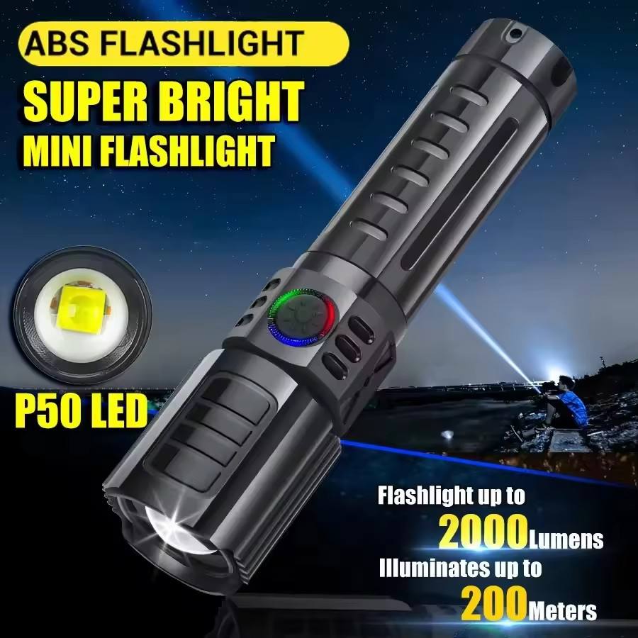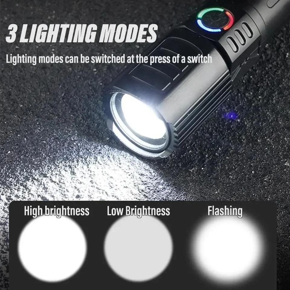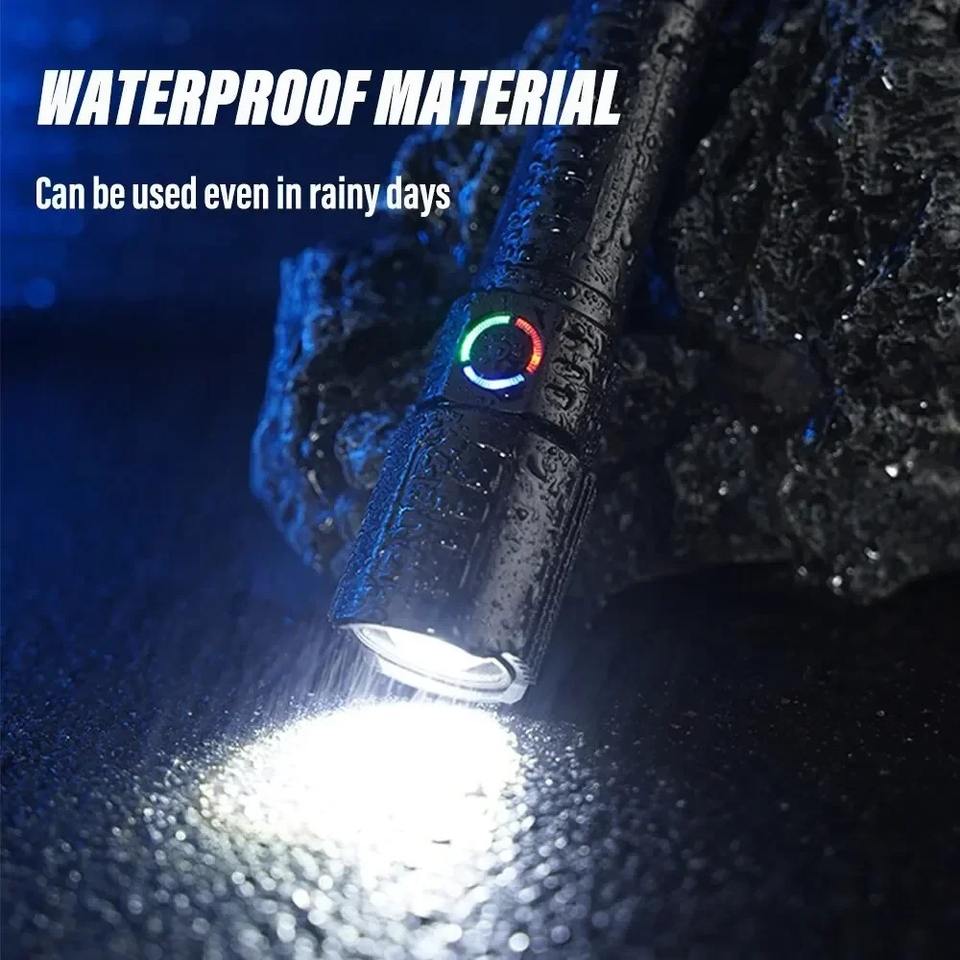 Linterna potente XHP50, 3 modos, luz LED fuerte, linterna con Zoom telescópico, recargable por USB, linterna de largo alcance para acampar y pescar
