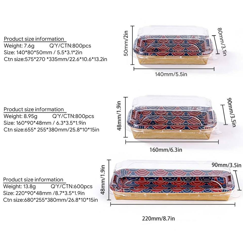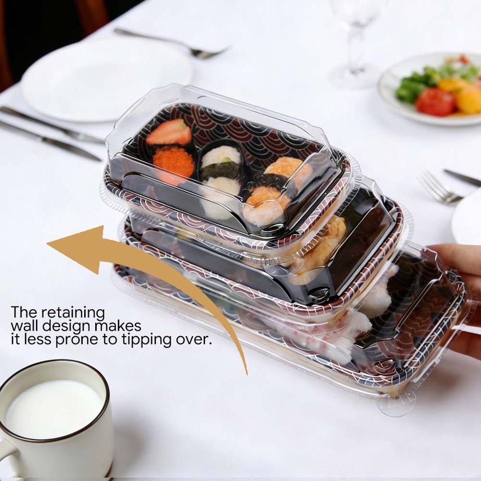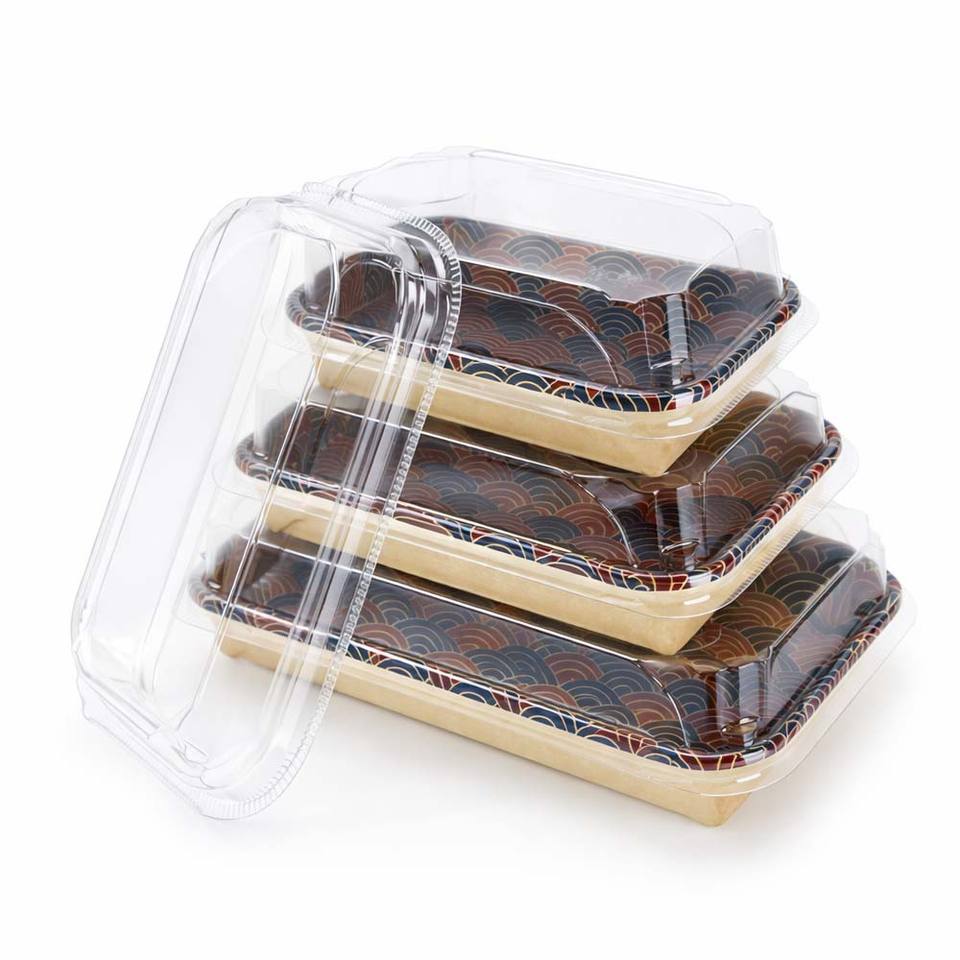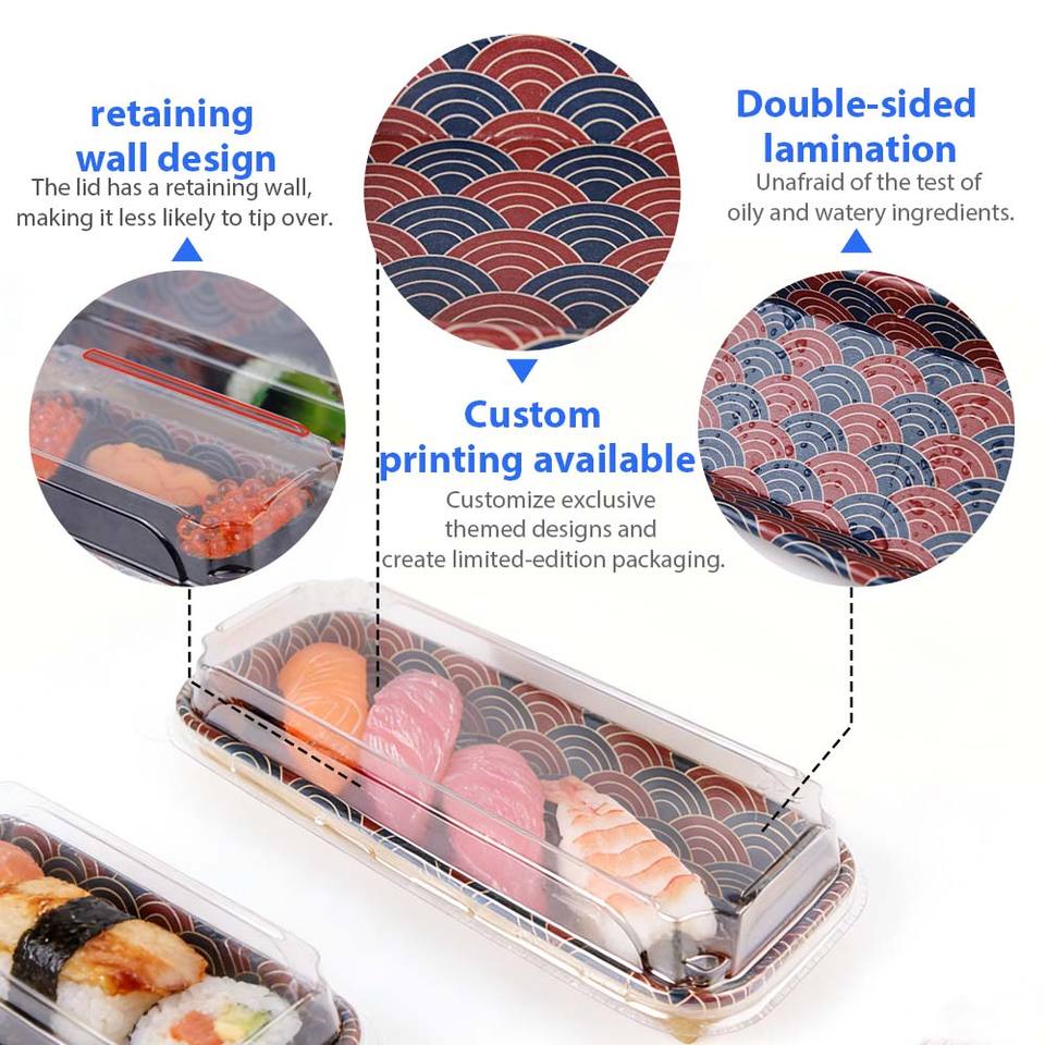 Bandeja de Sushi Desechable Color Dorado, Bandeja de Papel de Lujo para Sushi con Tapa, Caja de Empaque con Diseño de Logotipo Personalizable