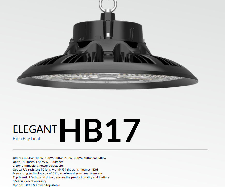 Lámpara LED de Techo Industrial XINDECO, Regulable de 1-10V, 3CCT Ajustables, IP65, 60W-500W