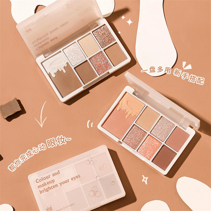 Paleta de Sombras de Ojos XIXI Oat Milk Tea Chestnut de 7 Colores, Sombras de Ojos Brillantes y Mate, Polvo de Sombras de Ojos con Brillo Suave