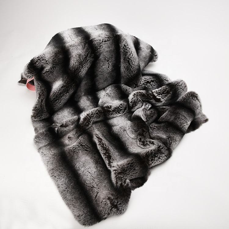 Manta de Piel de Conejo Rex Chino Genuina XJ, Piel Suave y Gruesa para Silla y Cama, Color Chinchilla Teñido, Alfombra de Piel