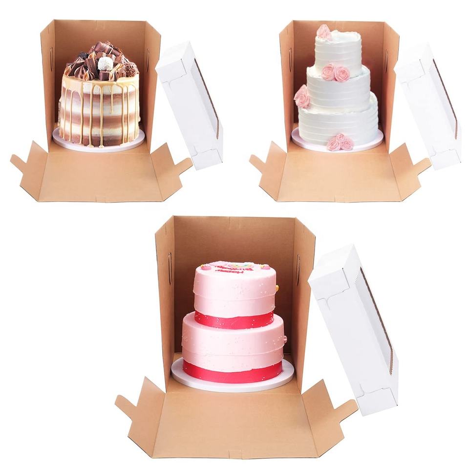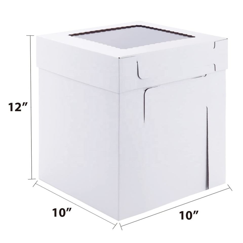 XJH Cake Carrier 10x10x12 Caja de pastel de papel alto Caja de cartón para pasteles de diseño superior de 10 pulgadas con tapa transparente Detalles del paquete: Envoltura retráctil y empaquetado en caja de cartón fuerte de 5 capas.