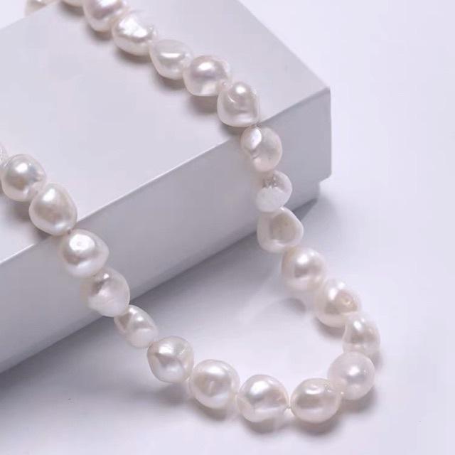 Collar de Perlas Barrocas de Agua Dulce de Partículas Grandes Estilo Clásico XL42-2, Perla Natural Verdadera con Cadena para el Cuello, Luz Intensa
