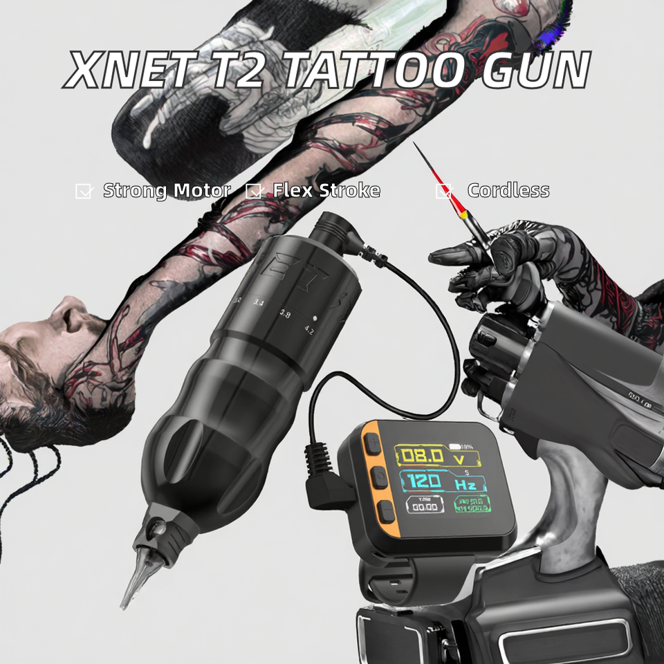 Máquina de Tatuaje Rotativa Profesional XNET T2, Pluma con Carrera Ajustable de 2.0-4.2mm, Motor Potente, Batería Recargable, Eléctrica para