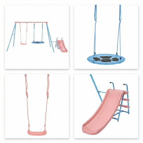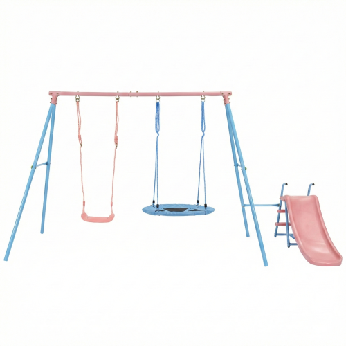 XNS107 Juego de dos columpios con tobogán azul y rosa para parque infantil al aire libre