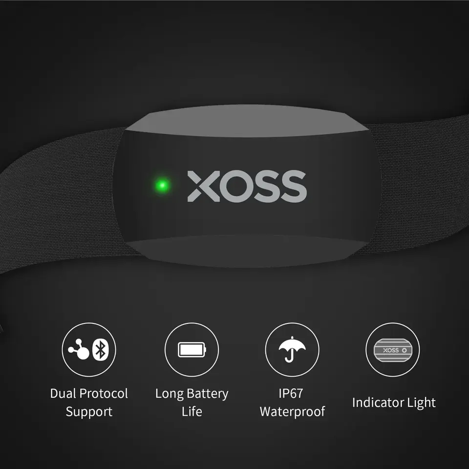 Sensor de Ritmo Cardíaco XOSS X2 con Correa para el Pecho, Monitor de Salud y Fitness Inalámbrico BT ANT+, Sensor Inteligente para Bicicleta