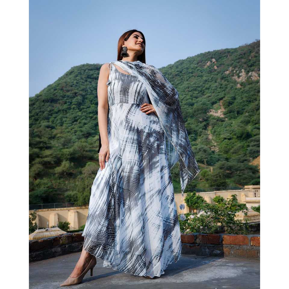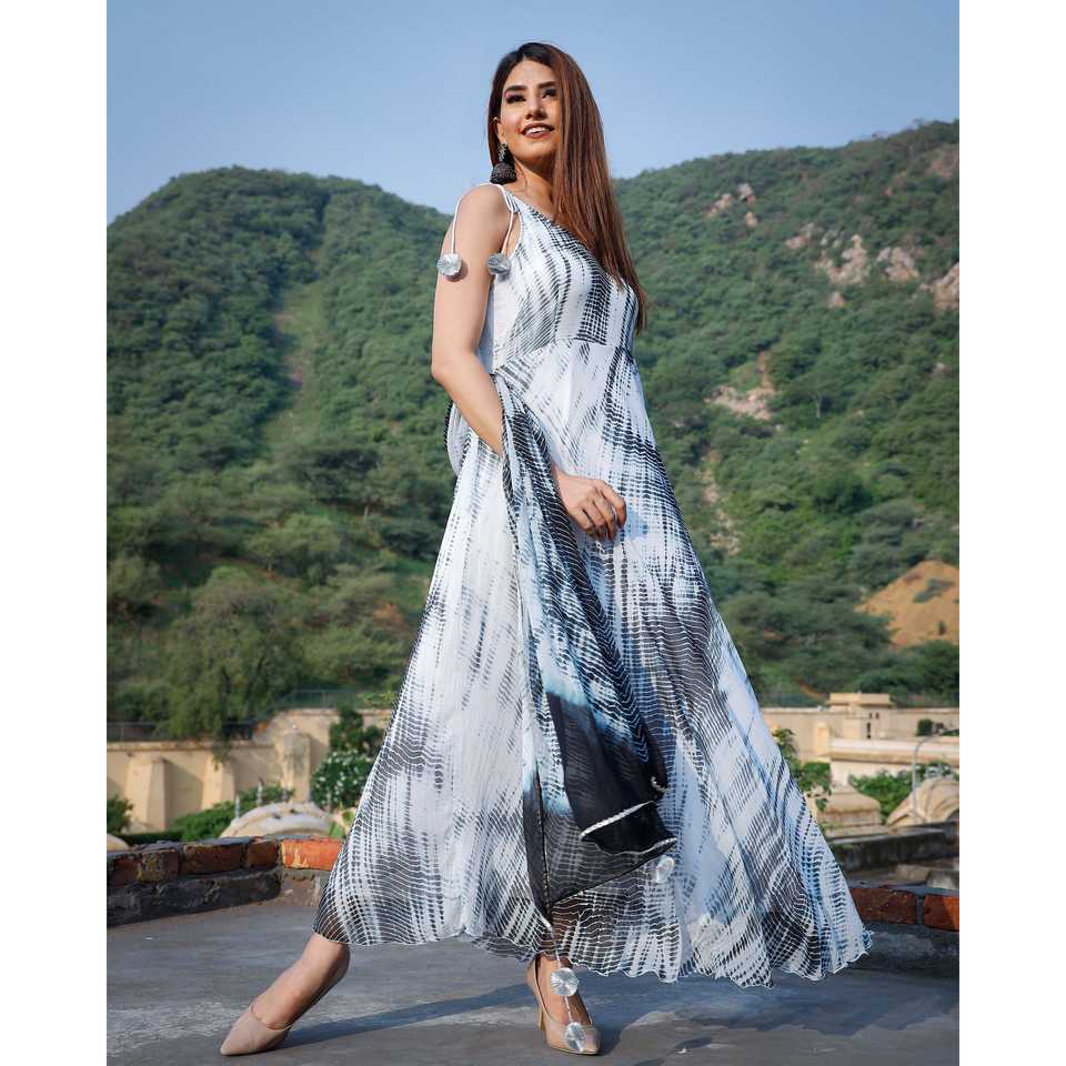 Conjunto de Traje con Volantes Tie Dye Blanco para Mujer, Talla XS, en Tela de Chifón Puro