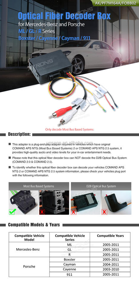 Caja decodificadora de fibra óptica XTRONS ACFOBMB01 para Mercedes-Benz Clase B T246