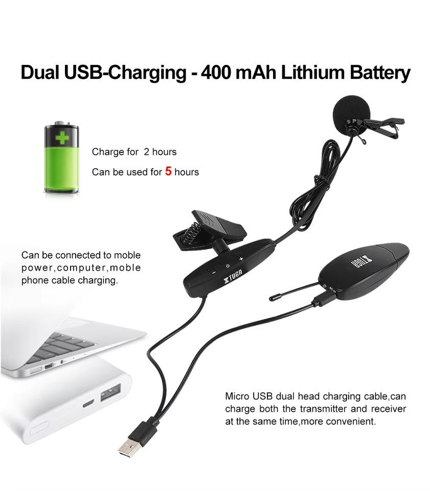 Micrófono de Condensador Cardioide Inalámbrico UHF XTUGA KX621 de Solapa con Cancelación de Ruido Portátil para Saxofón Trompetas y Teléfonos Inteligentes
