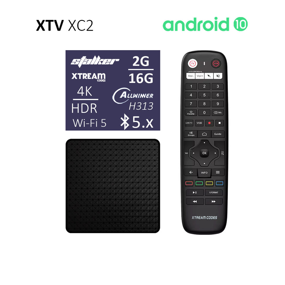 Decodificador XTV XC2 Android 10 Xtreamcodes para TV Box Allwinner H313 Quad Core 2G 16G BT5 WiFi Dual 4K HEVC H.265 OTT