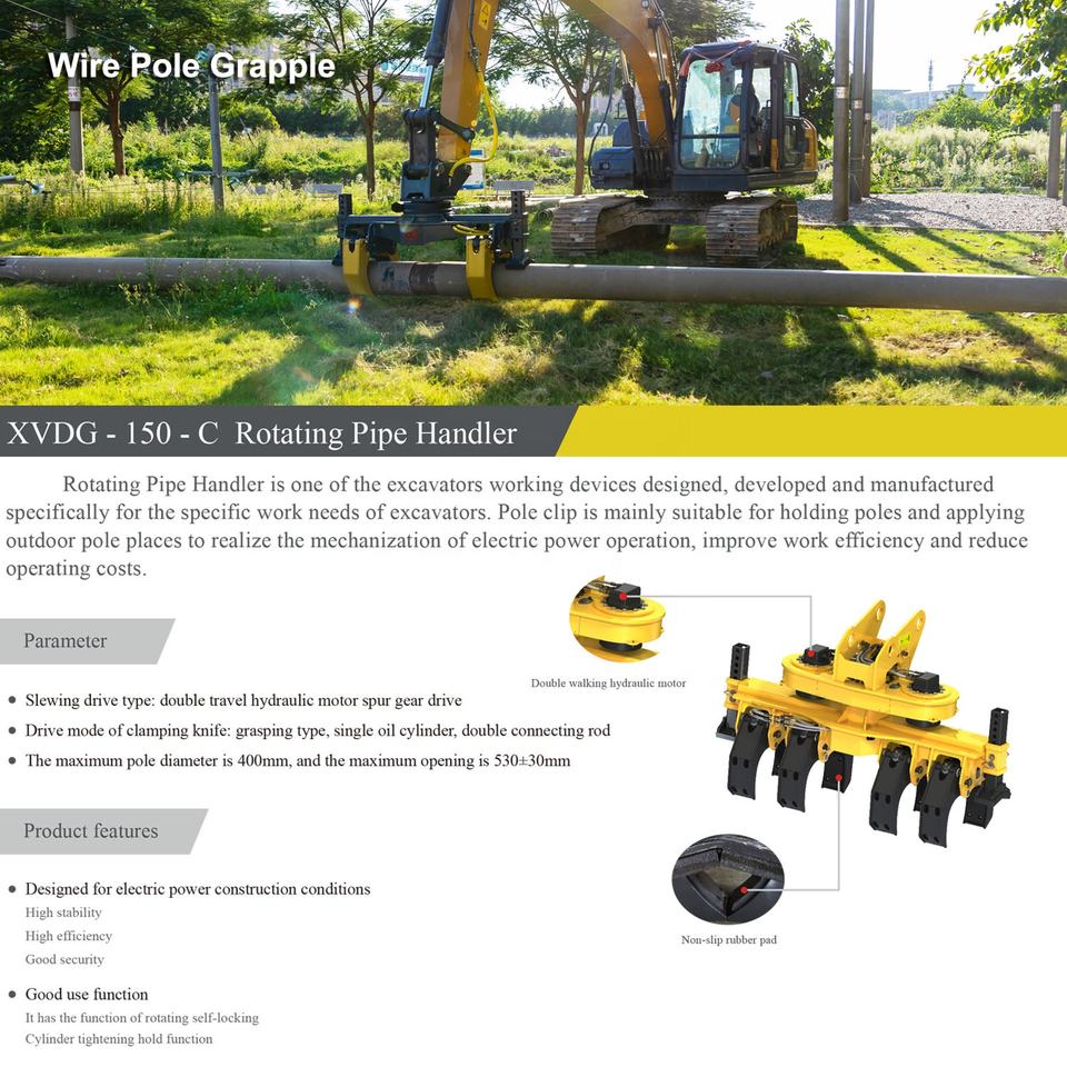 Uso:Instalar en excavadora, levantar el poste, insertar en el agujero.