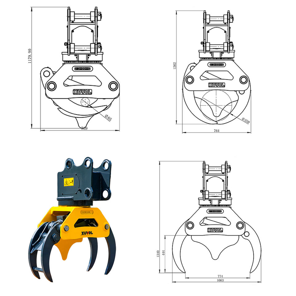 Tipo de accionamiento de giro:Diente recto vertical, motor único, freno hidráulico