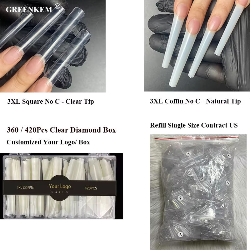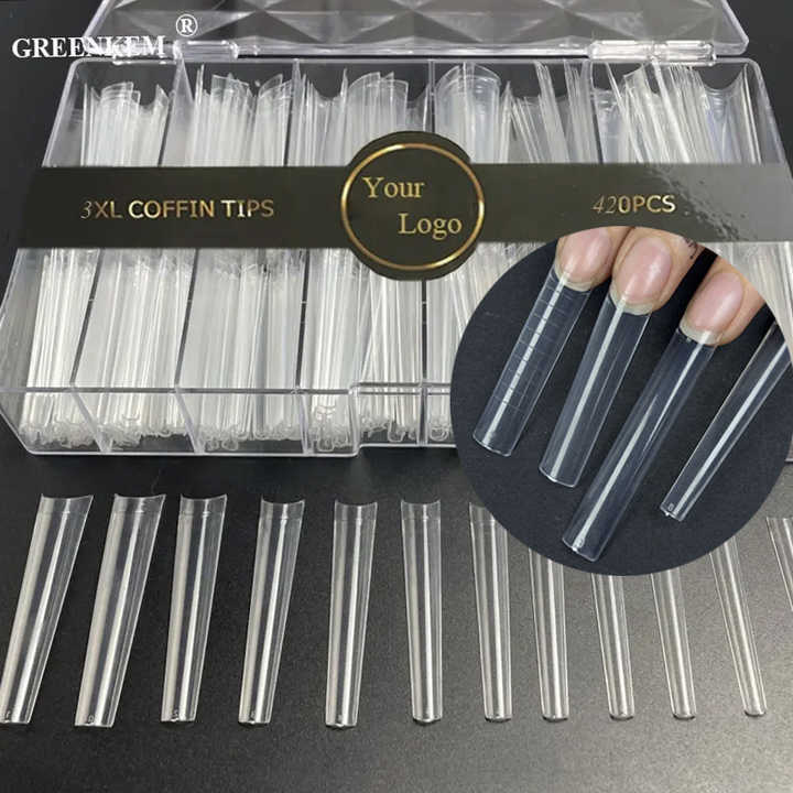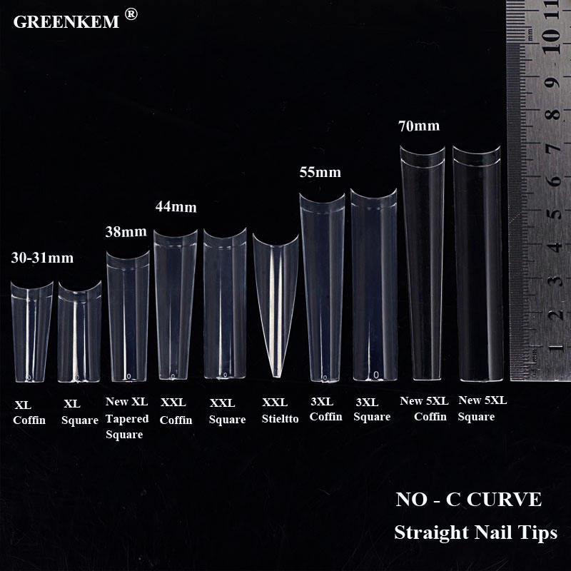Puntas de Uñas XXL con Línea 3XL Sin Curva C en Caja Cuadradas Stiletto Largas Rectas de ABS con LOGO Personalizado XXL sin Cubierta C Puntas de Uñas Coffin