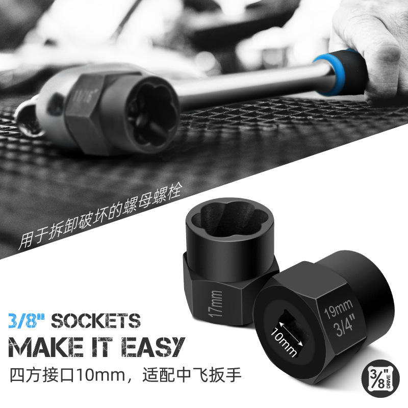 Juego de llaves de vaso triples Xi Meng de 1/2 pulgada, de acero al cromo molibdeno con revestimiento negro, para herramientas de reparación automotriz