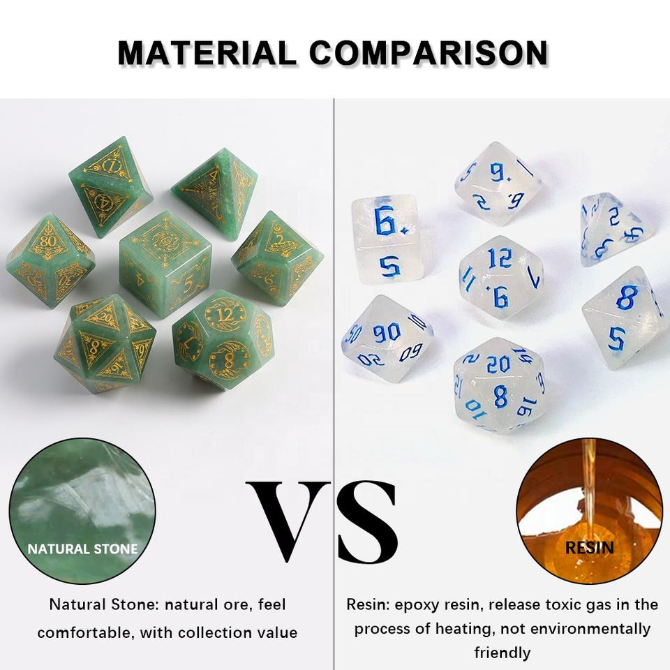 Xi Ping Juegos de mesa Dados Mazmorras y dragones Piedra natural Piedra preciosa DND RPG Dados 16mm-24mm Juego verde a granel